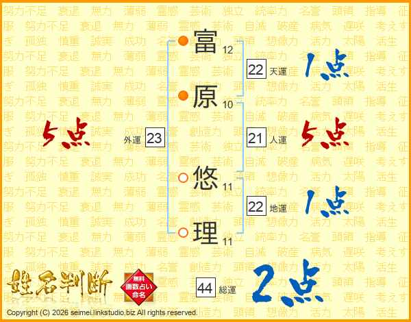 富原悠理さんの総運は44画の2点!