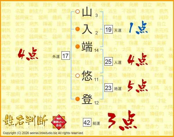 山入端悠登さんの人運は25画の4点!