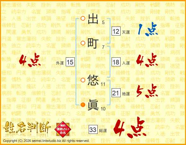 出町悠眞さんの総運は33画の4点!