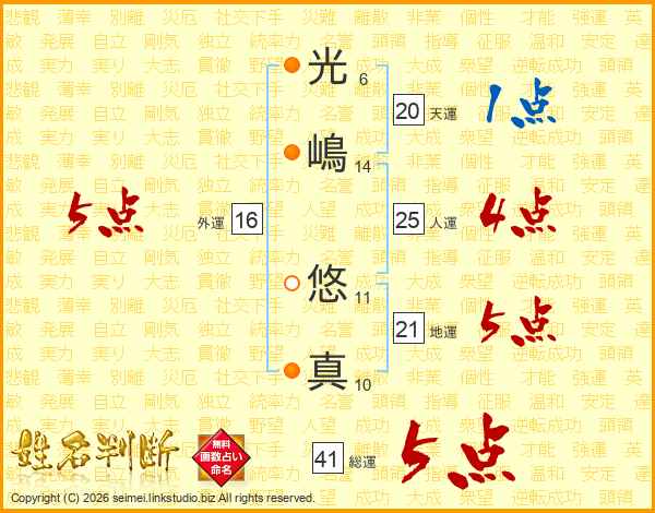光嶋悠真さんの総運は41画の5点!
