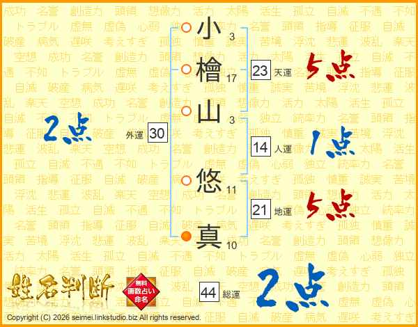 小檜山悠真さんの総運は44画の2点!