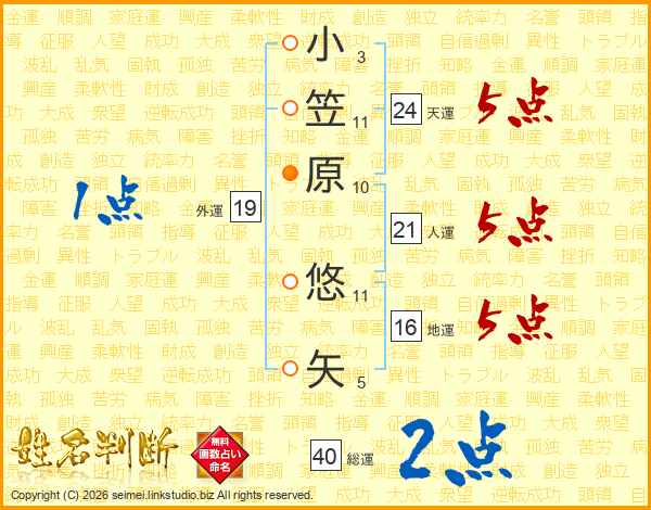 小笠原悠矢さんの総運は40画の2点!