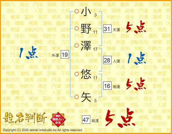 小野澤悠矢さんの総運は47画の5点!