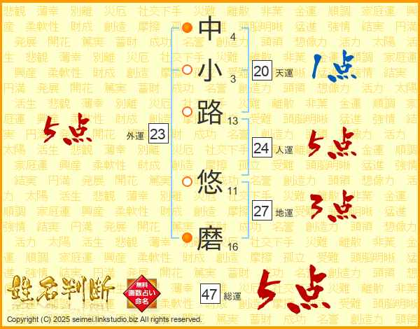 中小路悠磨さんの総運は47画の5点!