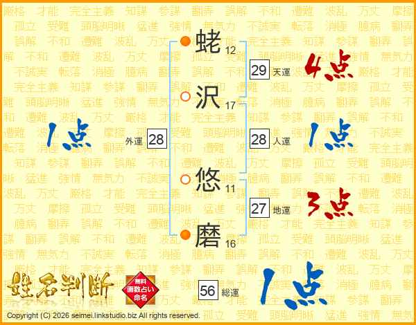 蛯沢悠磨さんの総運は56画の1点!