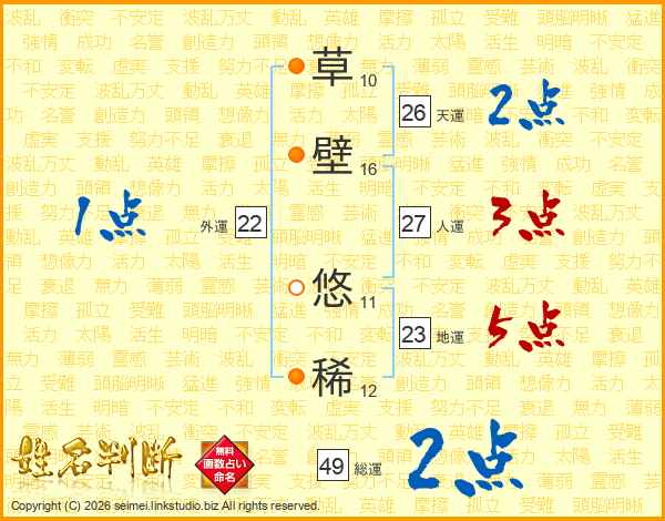 草壁悠稀さんの天運は26画の2点!