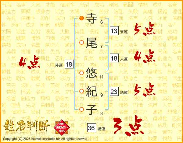 寺尾悠紀子さんの総運は36画の3点!