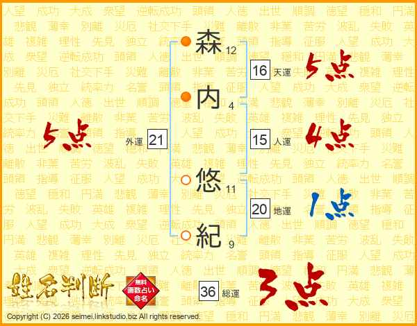 森内悠紀さんの総運は36画の3点!