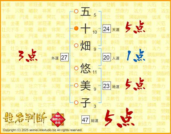 五十畑悠美子さんの総運は47画の5点!