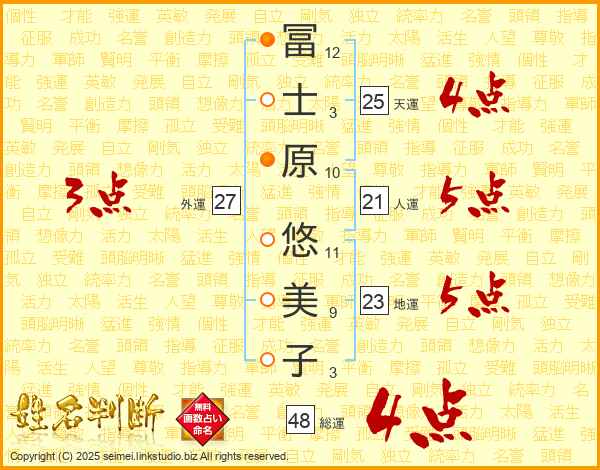 冨士原悠美子さんの天運は25画の4点!