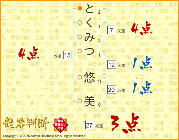 とくみつ悠美さんの総運は27画の3点!