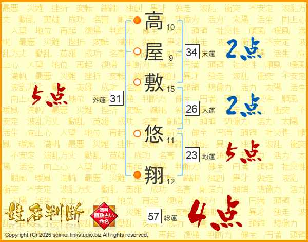 高屋敷悠翔さんの総運は57画の4点!