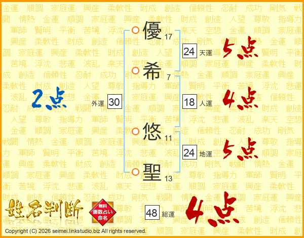 優希悠聖さんの総運は48画の4点!