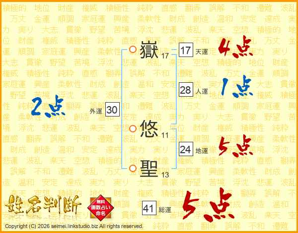嶽悠聖さんの総運は41画の5点!