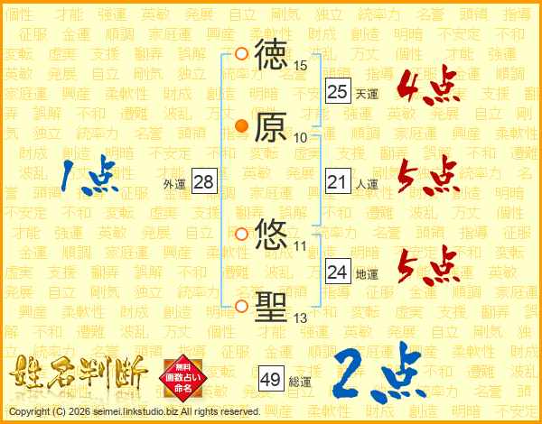 徳原悠聖さんの総運は49画の2点!
