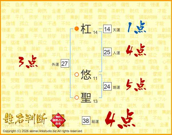 杠悠聖さんの総運は38画の4点!