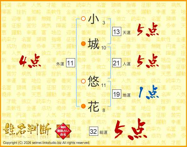 小城悠花さんの総運は32画の5点!