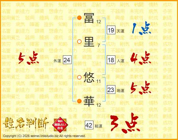 冨里悠華さんの外運は24画の5点!