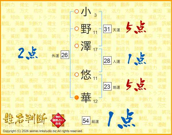 小野澤悠華さんの人運は28画の1点!