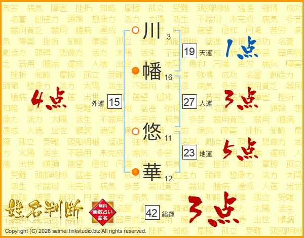 川(3画)幡(16画) 悠(11画)華(12画)