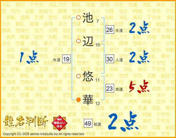 池辺悠華さんの天運は26画の2点!