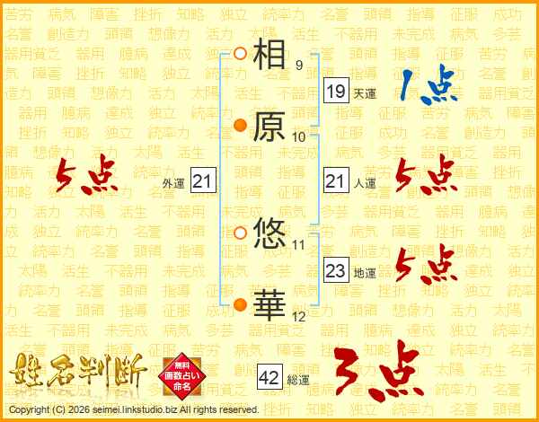 相原悠華さんの人運は21画の5点!
