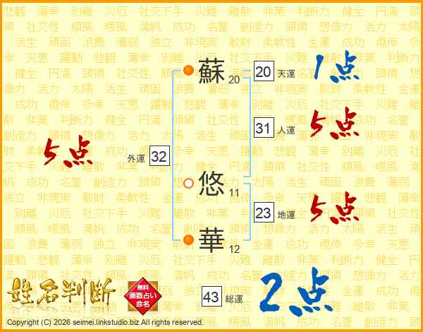 蘇悠華さんの総運は43画の2点!