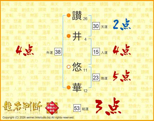 讃(26画)井(4画) 悠(11画)華(12画)
