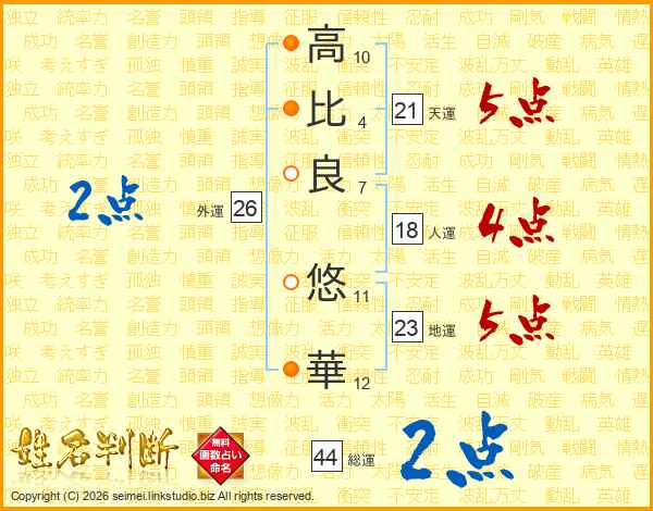 高(10画)比(4画)良(7画) 悠(11画)華(12画)