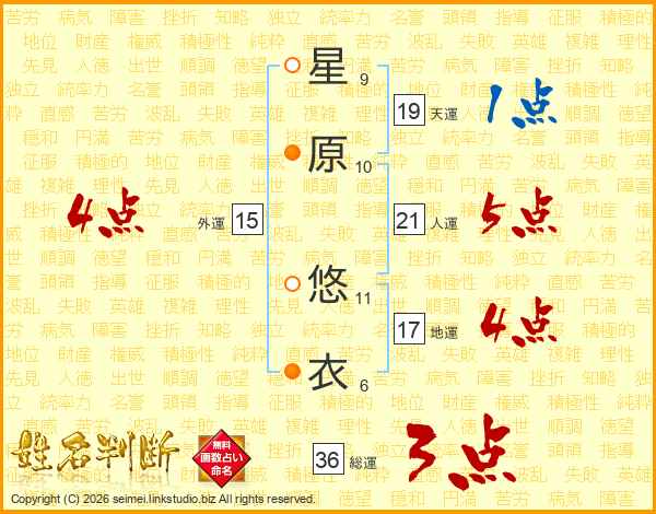 星原悠衣さんの総運は36画の3点!