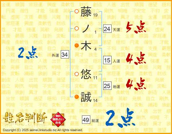 藤ノ木悠誠さんの総運は49画の2点!