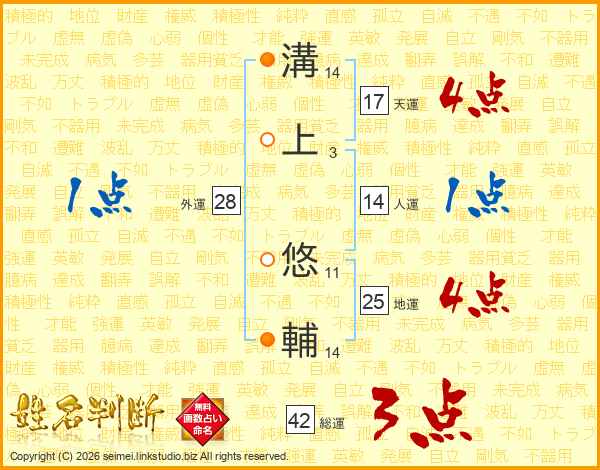 溝上悠輔さんの天運は17画の4点!