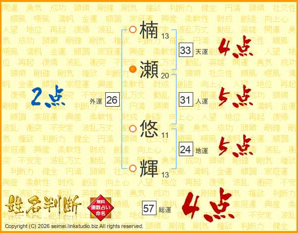 楠瀬悠輝さんの総運は57画の4点!