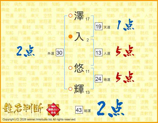 澤入悠輝さんの総運は43画の2点!