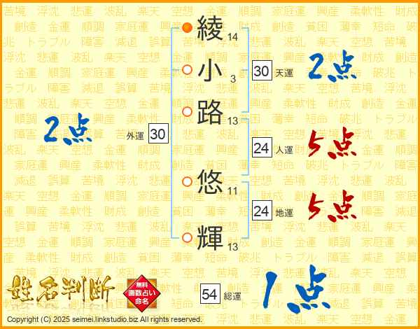 綾小路悠輝さんの総運は54画の1点!