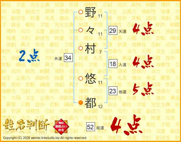 野々村悠都さんの総運は52画の4点!