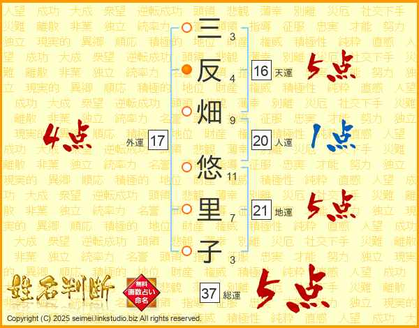 三反畑悠里子さんの総運は37画の5点!