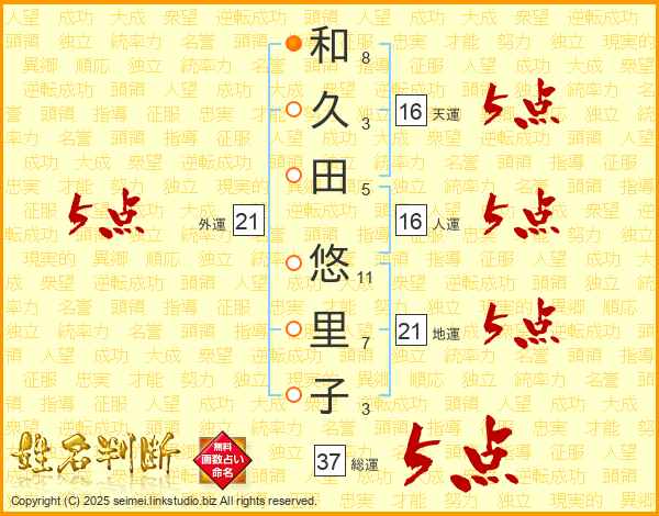 和(8画)久(3画)田(5画) 悠(11画)里(7画)子(3画)