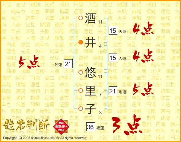 酒井悠里子さんの総運は36画の3点!