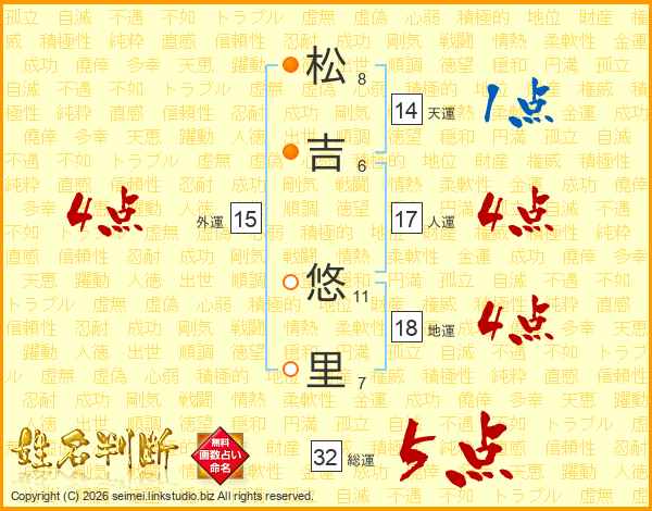 松吉悠里さんの総運は32画の5点!