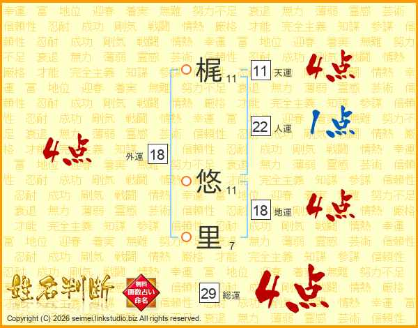 梶悠里さんの総運は29画の4点!