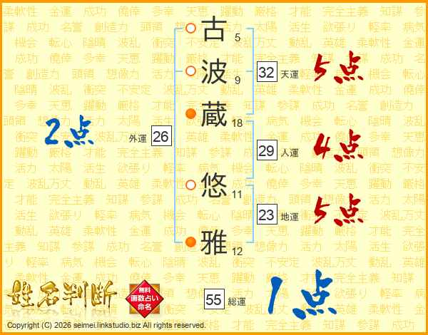 古(5画)波(9画)蔵(18画) 悠(11画)雅(12画)