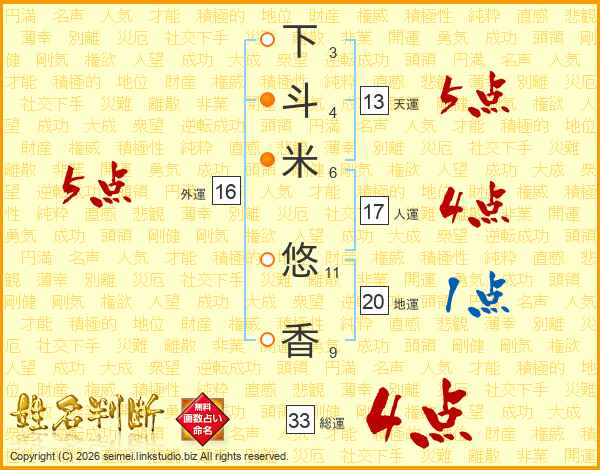下斗米悠香さんの総運は33画の4点!