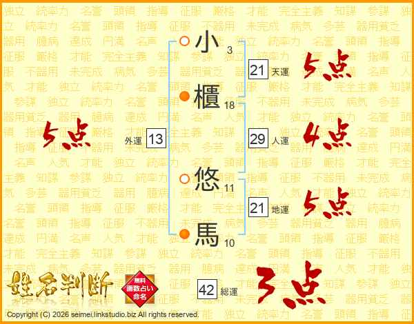 小櫃悠馬さんの天運は21画の5点!