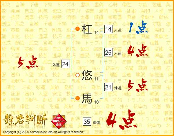 杠悠馬さんの総運は35画の4点!