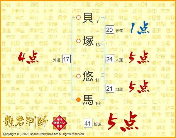 貝塚悠馬さんの総運は41画の5点!