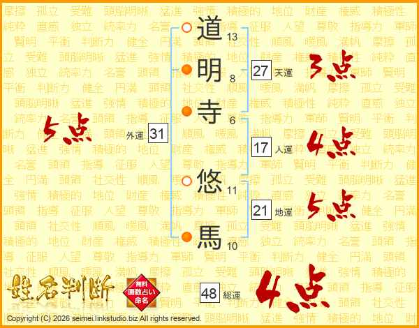 道明寺悠馬さんの総運は48画の4点!
