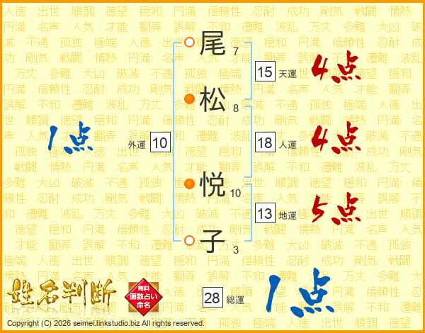 尾(7画)松(8画) 悦(10画)子(3画)