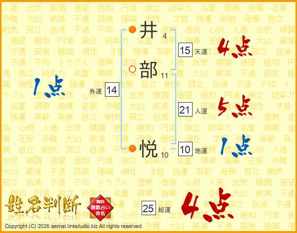 井(4画)部(11画) 悦(10画)