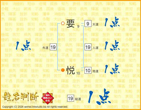 要悦さんの総運は19画の1点!